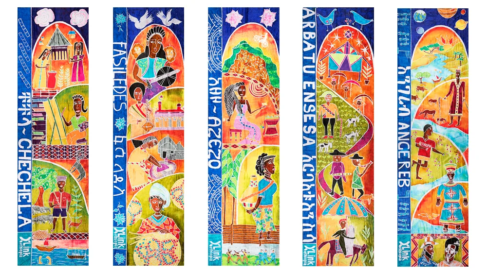 The team delivered workshops in 10 local schools with over 600 children to draw, design and paint 10 silk artworks, with a resulting finale event capturing over 1,000 participants in a celebration of Ethiopian culture.
